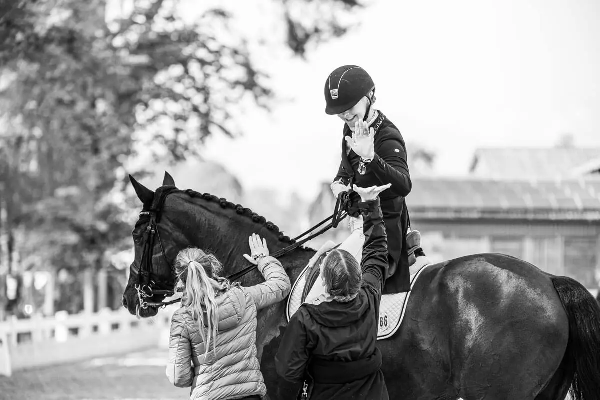 • Stress and nervousness can have negative impacts on performance. Make sure that your horse is focused and relaxed!