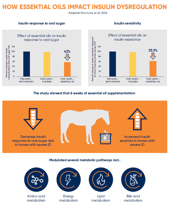2. Loos et al. (2024). Essential oil supplementation improves insulin sensitivity and modulates plasma metabolome of hyperinsulinemic horses. Frontiers in Veterinary Science, 11, Article 1444581.