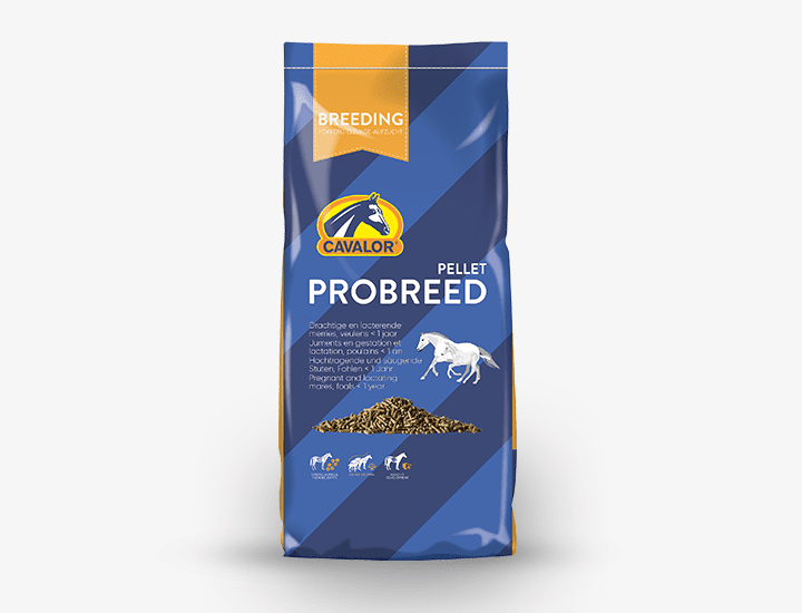 Cavalor Probreed Mix is a high-protein pellet feed for pregnant and lactating mares and weanlings. It supports proper development and balanced growth in foals and keeps mares in good condition.